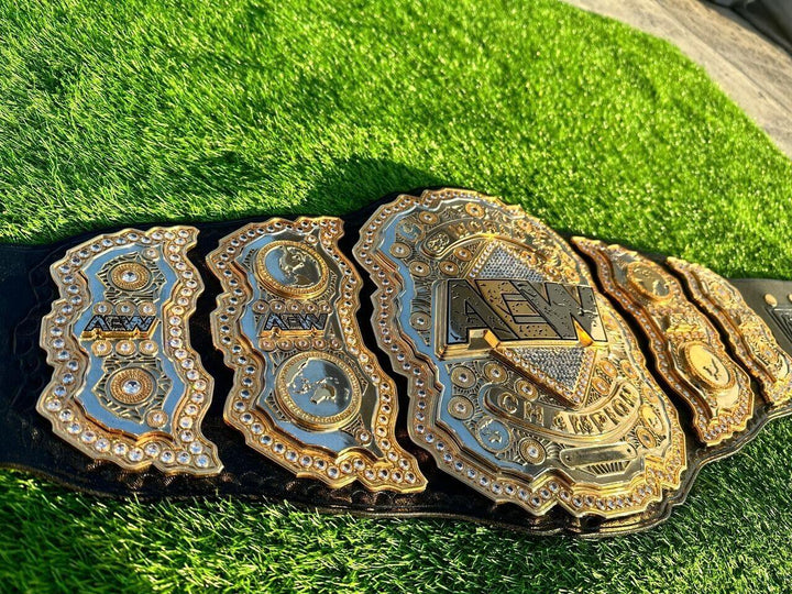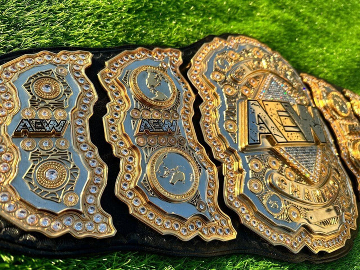 AEW CHAMPION HEAVYWEIGHT CNC MADE CHAMPIONSHIP BELT AEW Champion Heavyweight Championship Belt is one of the most high-rated belts in the history of wrestling. This championship belt is specially made through a CNC machine process. This belt is the top-quality belt available here at zees belts. This belt is 24k Gold plated. High-quality.