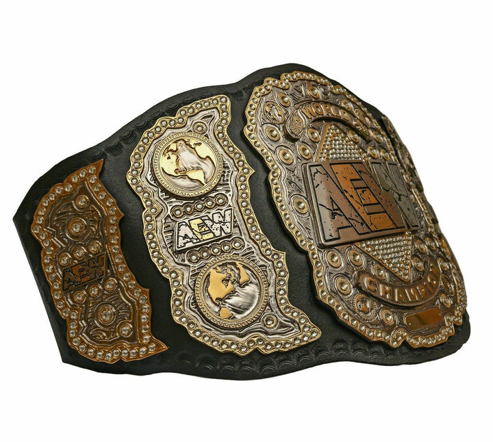 Expertly crafted with high-quality materials, the belt features finely detailed metal plates with a classic finish that highlights the AEW logo and intricate championship engravings. The durable leather strap is designed for both comfort and strength, ensuring long-lasting use whether you wear it or display it. The craftsmanship captures every small detail, giving it an authentic look that closely resembles the original championship belt seen in AEW events.