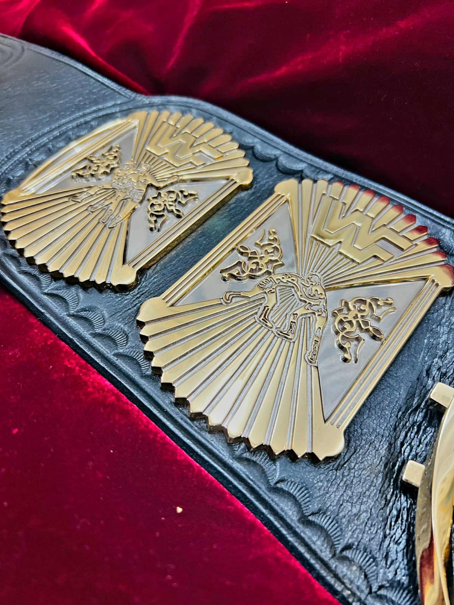 Constructed from high-quality materials, this replica combines durability with a striking visual appeal, making it ideal for collectors, cosplay enthusiasts, and wrestling fans alike. The adjustable leather straps ensure a comfortable fit for display or wear, while the bold embossed lettering proudly proclaims “WWF Champion,” staying true to the classic design.