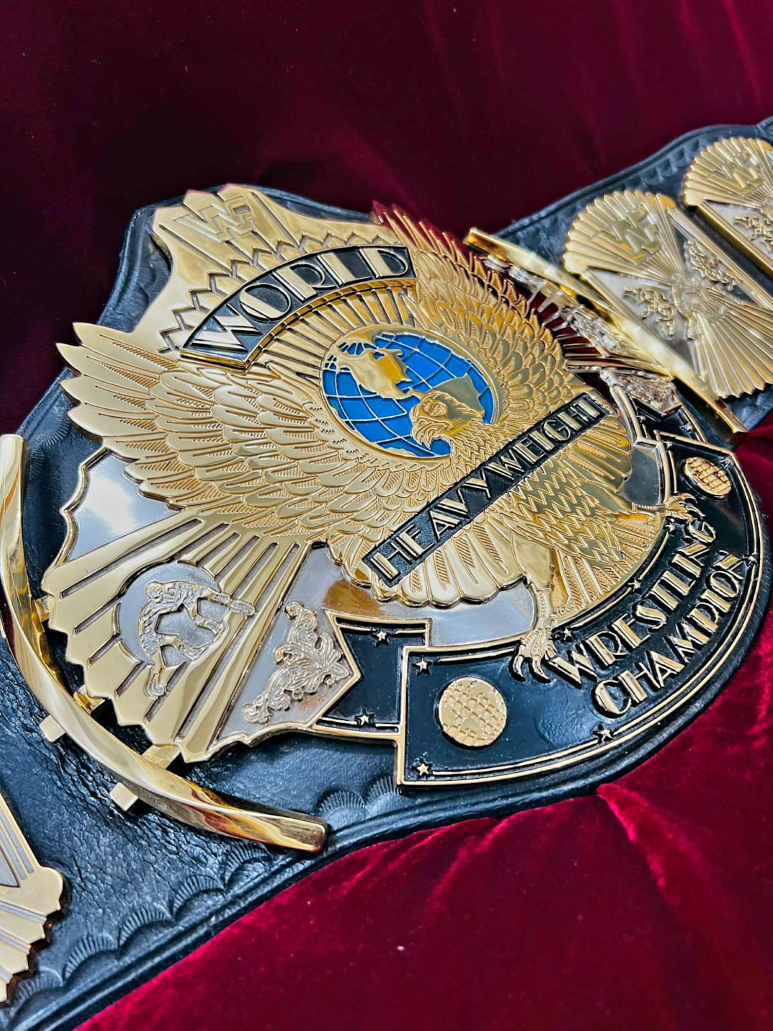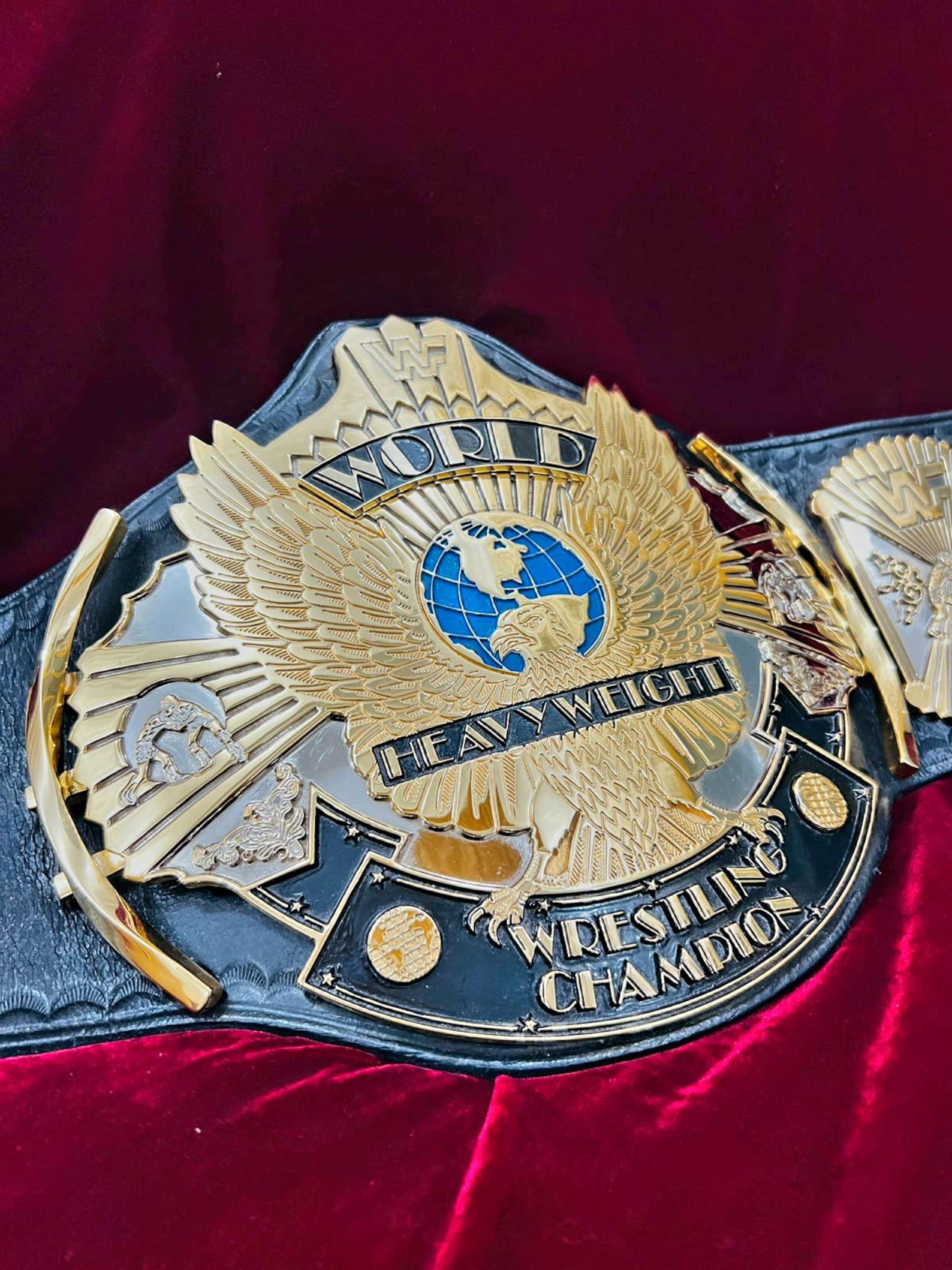 Whether displayed on a shelf, used for fan events, or showcased in personal collections, the WWF Winged Eagle 24K Gold Championship Belt embodies the spirit of wrestling greatness. Its authentic look, detailed craftsmanship, and prestigious gold finish make it a must-have for any serious fan or collector of wrestling memorabilia.